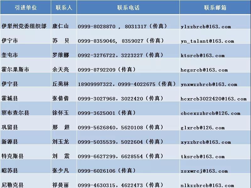凡有意愿来伊犁工作的硕士研究生学历以上人才,在公布的岗位需求目录中未找到合适岗位的,均可向伊犁州、县(市)委组织部进行咨询和报名,州、县(市)引才工作协调小组将综合考虑应聘人员基本情况,推荐到相关岗位。