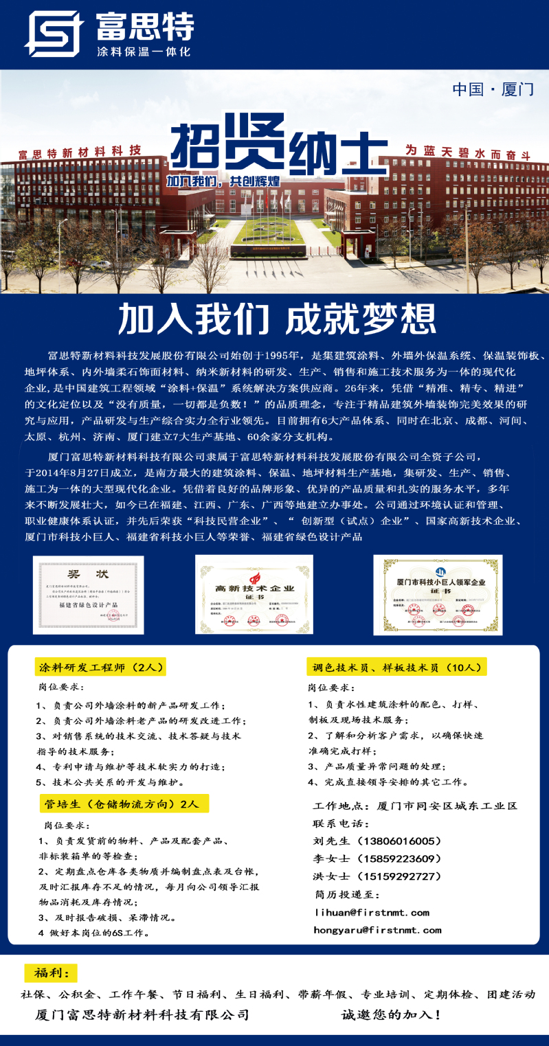 富思特新材料科技发展股份有限公司招聘简章