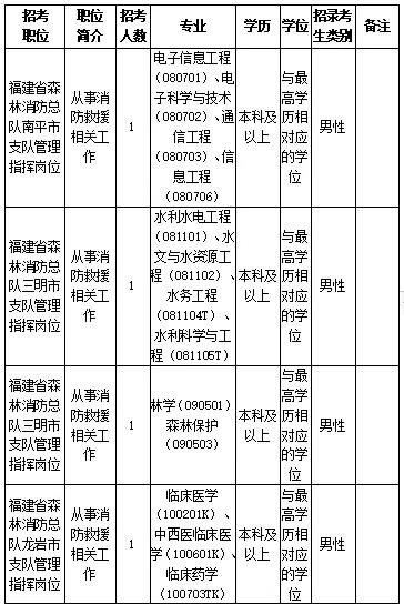福建省森林消防总队2022年国考招录干部10名,来看职位表